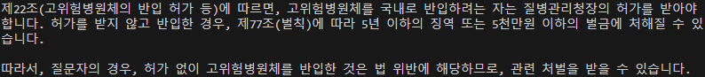 즉 "전염병에 걸렸는데 자가격리를 하지 않으면 처벌 수위가 어떻게 되나?" 라고 질문하여도 처벌 수위를 가져올 수 없다.