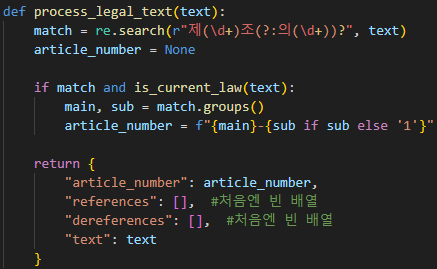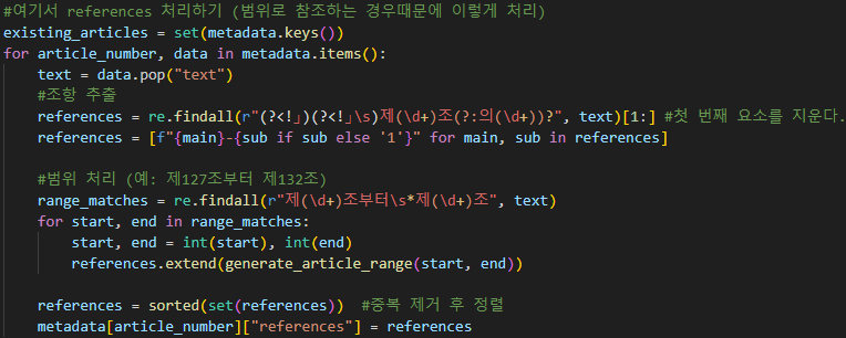 또한 여기에서 "제(\d+)조부터\s*제(\d+)조" 정규식을 통한 findall 함수를 통해 범위도 처리하게끔 구현해두었다.