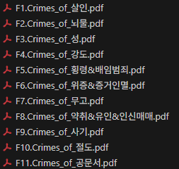양형기준안 PDF 파일을 모두 불러왔고, 이를 토대로 텍스트로 바꿔서 벡터 데이터베이스를 구축해줘야 했다.