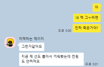 그래서 학교에 있는 관리자한테 연락해서 내 서버좀 살펴달라고 했다.